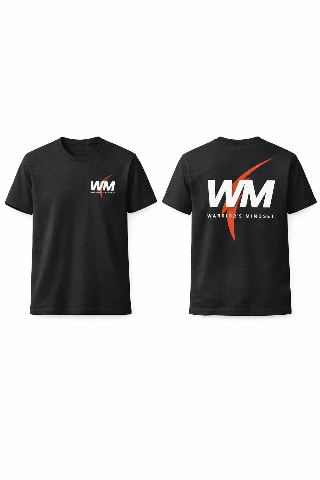 T-shirt noir premium au design minimaliste avec logo “WM” et signature “Warrior’s Mindset”. Un vêtement streetwear inspirant, conçu pour refléter détermination, discipline et mentalité de gagnant.